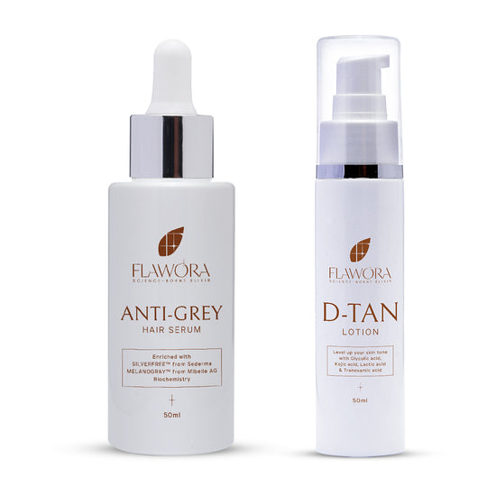 Set of Anti-Grey Hair Serum for Reversing Grey Hair and D-Tan Lotion for Pigmentation, Tan Removal